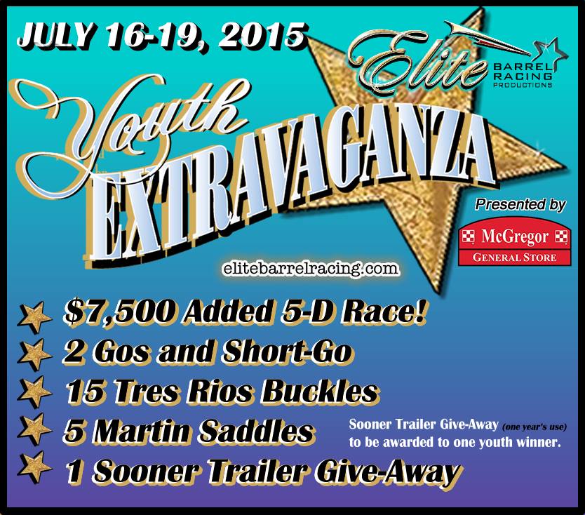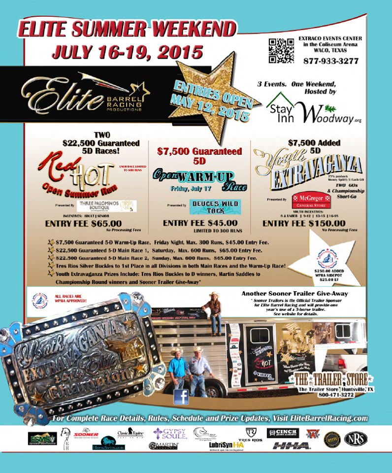 2015 flyerBe sure to mark your calendar and join us July 16 – 19 for the Elite Summer Weekend presented by Elite Barrel Racing events at the Extraco Events Center in Waco, Texas. Our sister store in McGregor, McGregor General Store is once again the title sponsor for the Elite Youth Extravaganza!