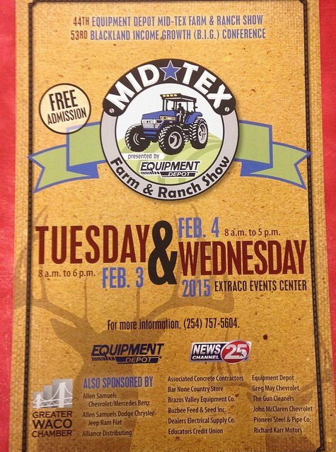 Join us! February 3 and 4, 2015 for the Mid Tex Farm and Ranch Show at the Extraco Events Center. McGregor General Store and Bar None Country Store will have a booth this year. Stop by and see the latest in farm and ranch equipment including Sioux Steel products. Admission is FREE! For more information, call 254-757-5604.
