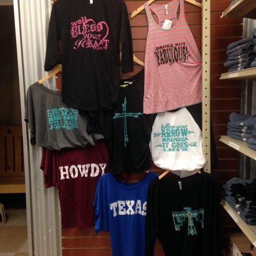 We are very excited to now carry and stock tees from LHTX. If you want something unique, here it is. These tops are designed by artists, printed and embellished by hand, and made in the USA right here in Texas. LHTX by Leigh K Hajovsky tops are made to be easy to wear and care free. They back their products 100% and believe in the handcrafted, Go Texan, American made philosophy. You must really stop by Bar None Country Store and see them.